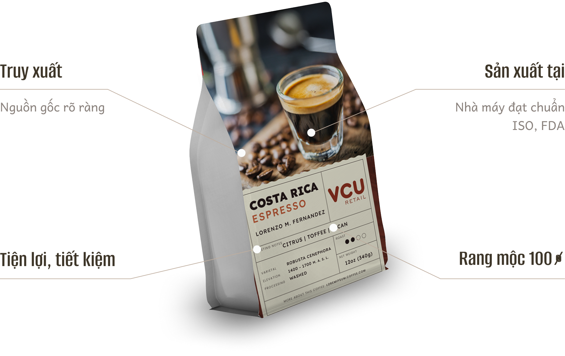 Mỗi sản phẩm mà VCU Retail mang đến thị trường, đều bắt đầu từ vùng nguyên liệu được tuyển chọn kỹ lưỡng. Thông qua việc quản lý chất lượng nghiêm ngặt và truy xuất nguồn gốc rõ ràng, VCU Retail cam kết mỗi hạt cà phê, mỗi nguyên liệu F&B, mỗi mặt hàng nông sản khi đến tay khách hàng đều chất lượng, an toàn, ổn định và đạt tiêu chuẩn quốc tế.